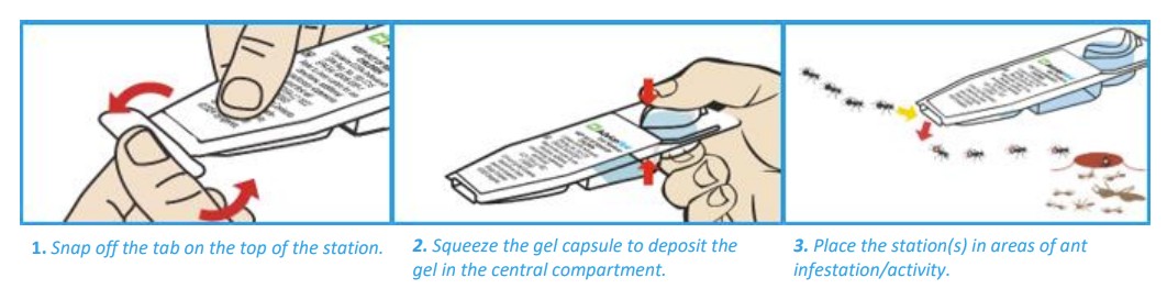 | Application: | Place bait stations where ants are likely to enter the structure. Inspect placements periodically and replace with new stations as needed. |